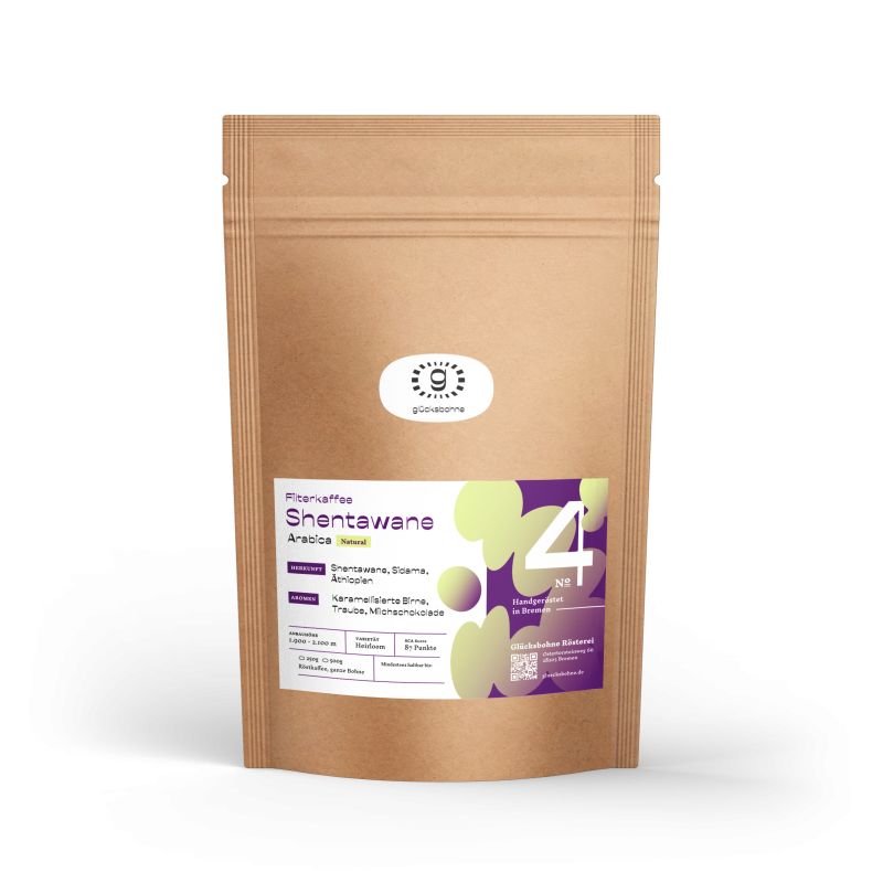 Dieser außergewöhnliche Arabica Kaffee aus der Shentawane Washing Station in der Sidama-Region Äthiopiens überzeugt mit einem eleganten und ausgewogenen Geschmacksprofil. Aromen von karamellisierter Birne, saftiger Traube und feiner Milchschokolade verbinden sich zu einer harmonischen Süße mit milder Säure. Auf 1.900–2.100 Metern Höhe angebaut und handgeröstet, steht dieser Kaffee für höchste Qualität und einen weichen, genussvollen Charakter in der Tasse.
